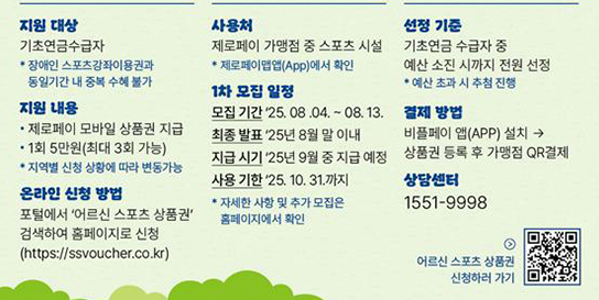 지금 바로 자격 조건을 확인하고, 시니어 스포츠 바우처로 인생의 두 번째 건강을 시작해보세요!