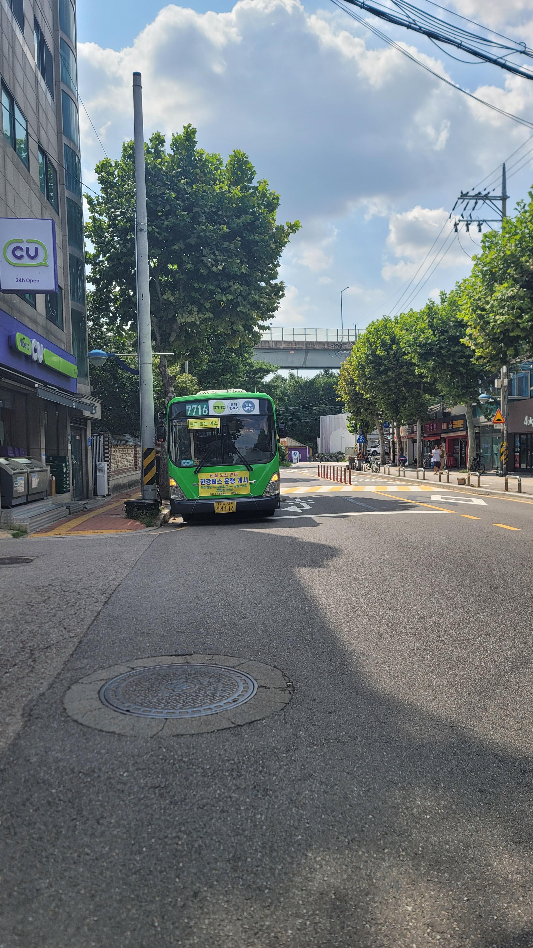 - 7716번: 서부운수차고지 → 가좌역 → 홍대입구역 → 합정역 → 망원역 → 한강버스망원선착장