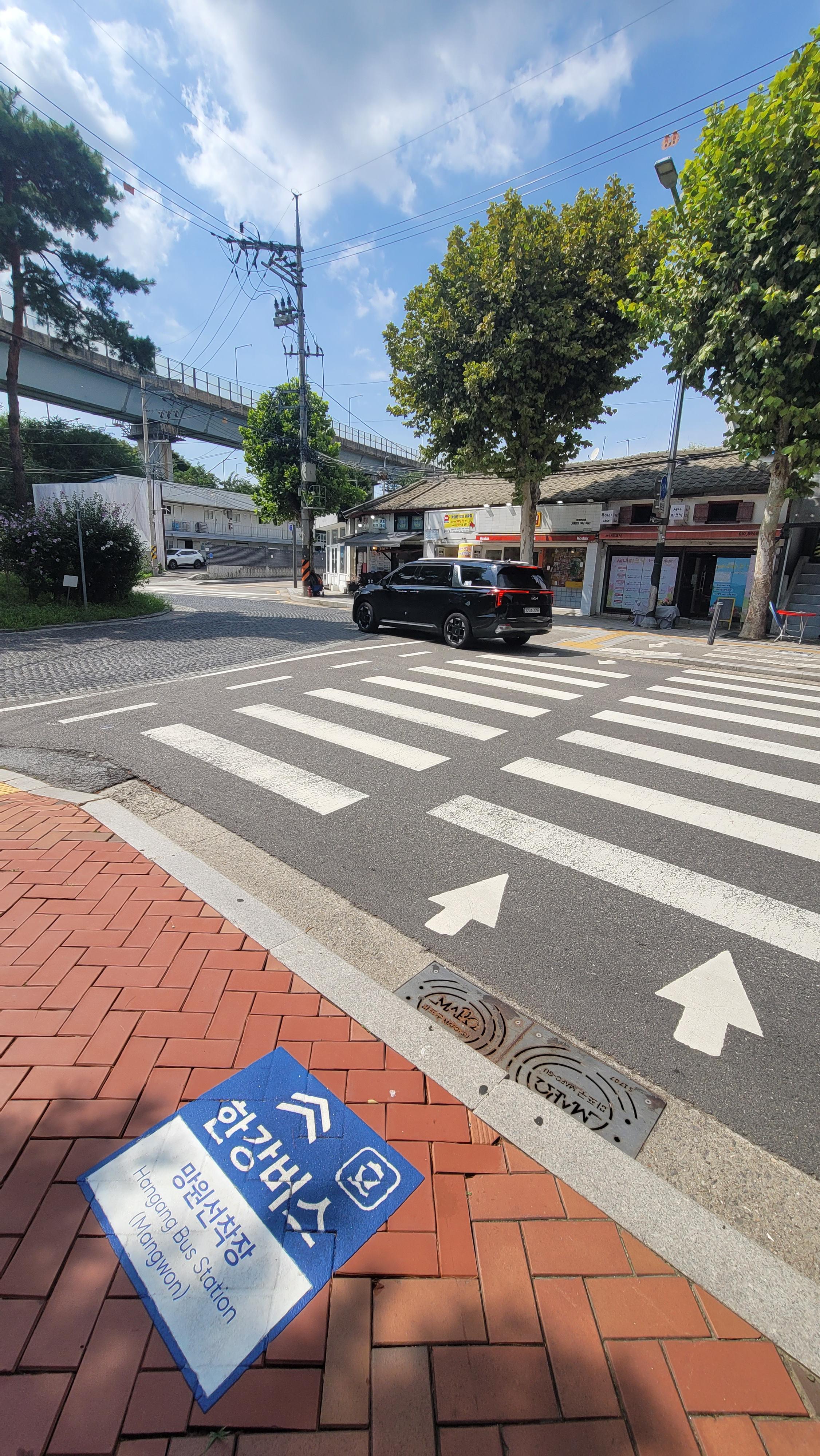 - 6호선 망원역: 1번 출구 → 마포09, 마포16번 버스 탑승