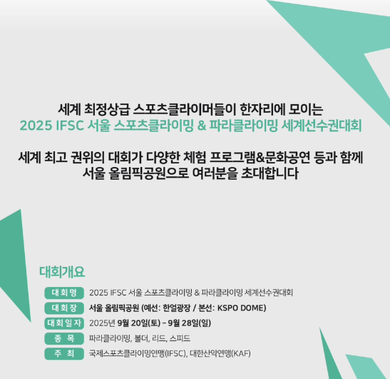 | 대회 명칭 | 2025 IFSC 클라이밍·파라클라이밍 세계선수권 |